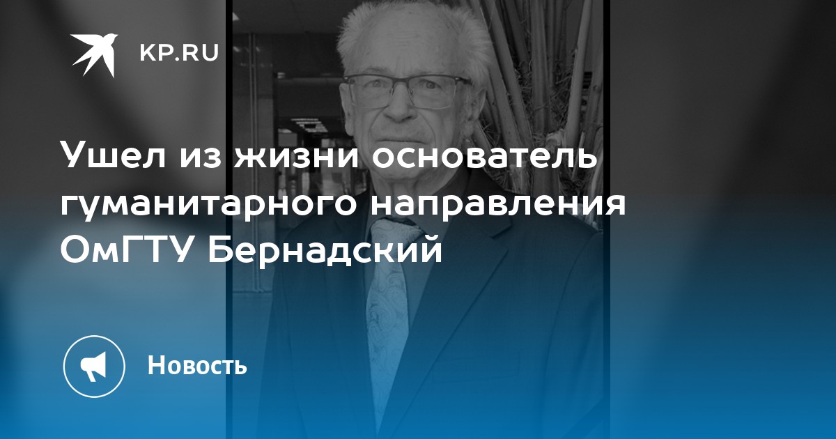 4 апреля ушел из жизни профессор, доктор философских наук, основатель гуманитарного направления образования в ОмГТУ Владилен Бернадский. Печальную новость сообщила в соцсетях кафедра истории, философии и социальных коммуникаций факультета гуманитарного образования вуза.