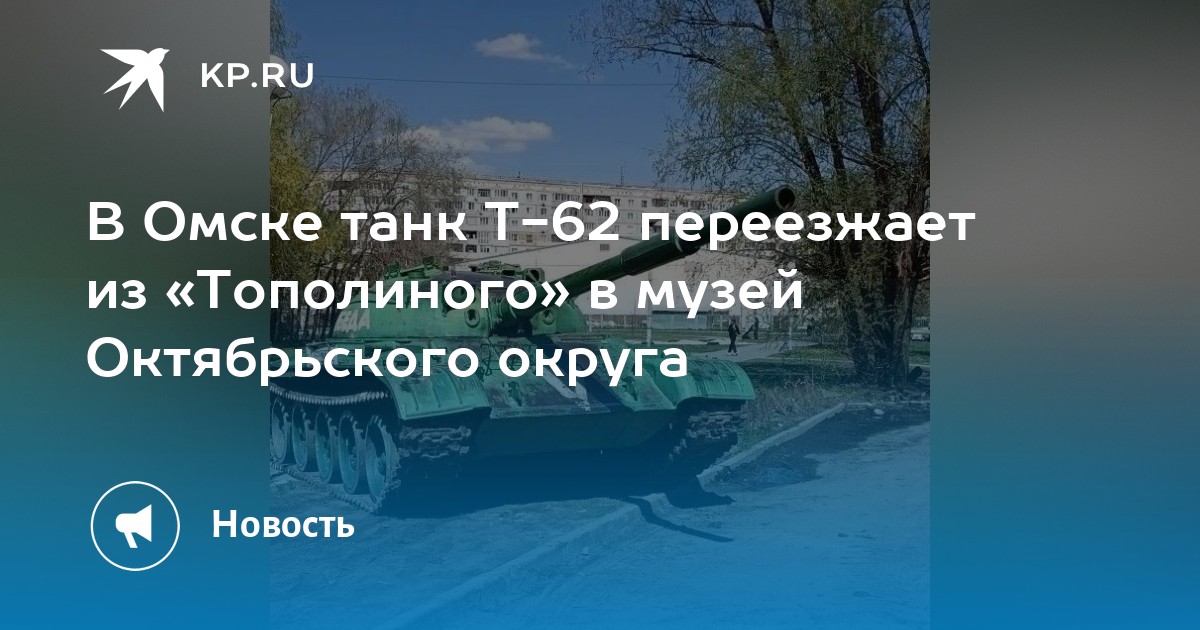 Танк Т-62, много лет простоявший во дворе дома в микрорайоне «Тополиный», отправляется на новое место. Он припаркуется на территории Центра гражданско-патриотического воспитания в Октябрьском округе. Новость землякам сообщил мэр Омска 30 апреля.